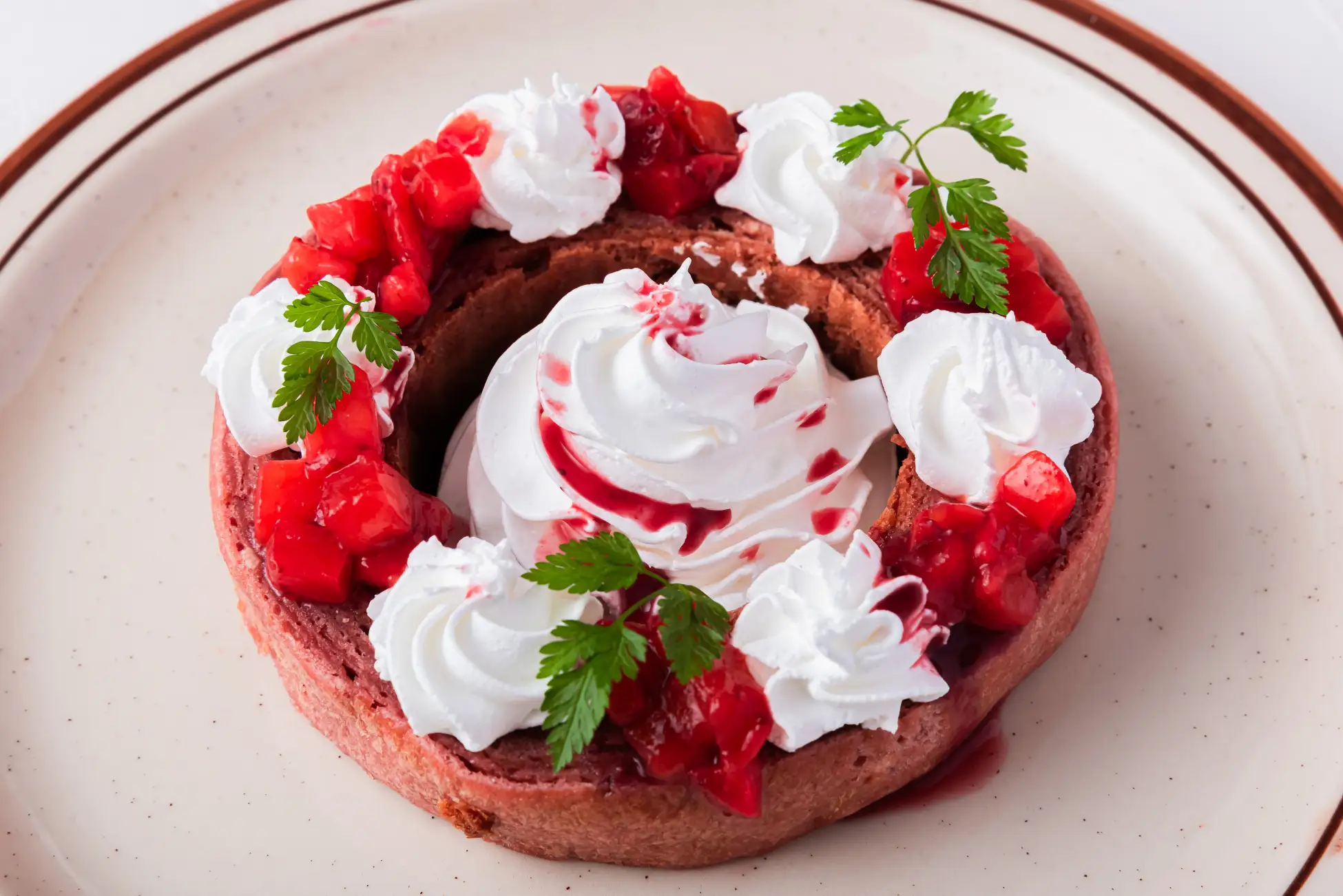 ●バウムクーヘン いちごのベリーソース&ホイップ
