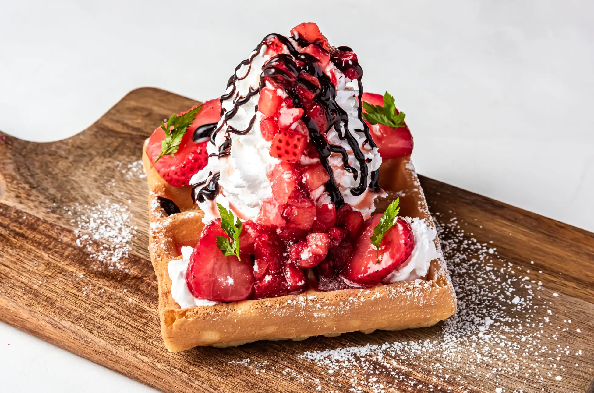 バター香るワッフル生地といちごのみずみずしい甘みが絶妙に重なり、見た目も味わいも華やかな一品です。