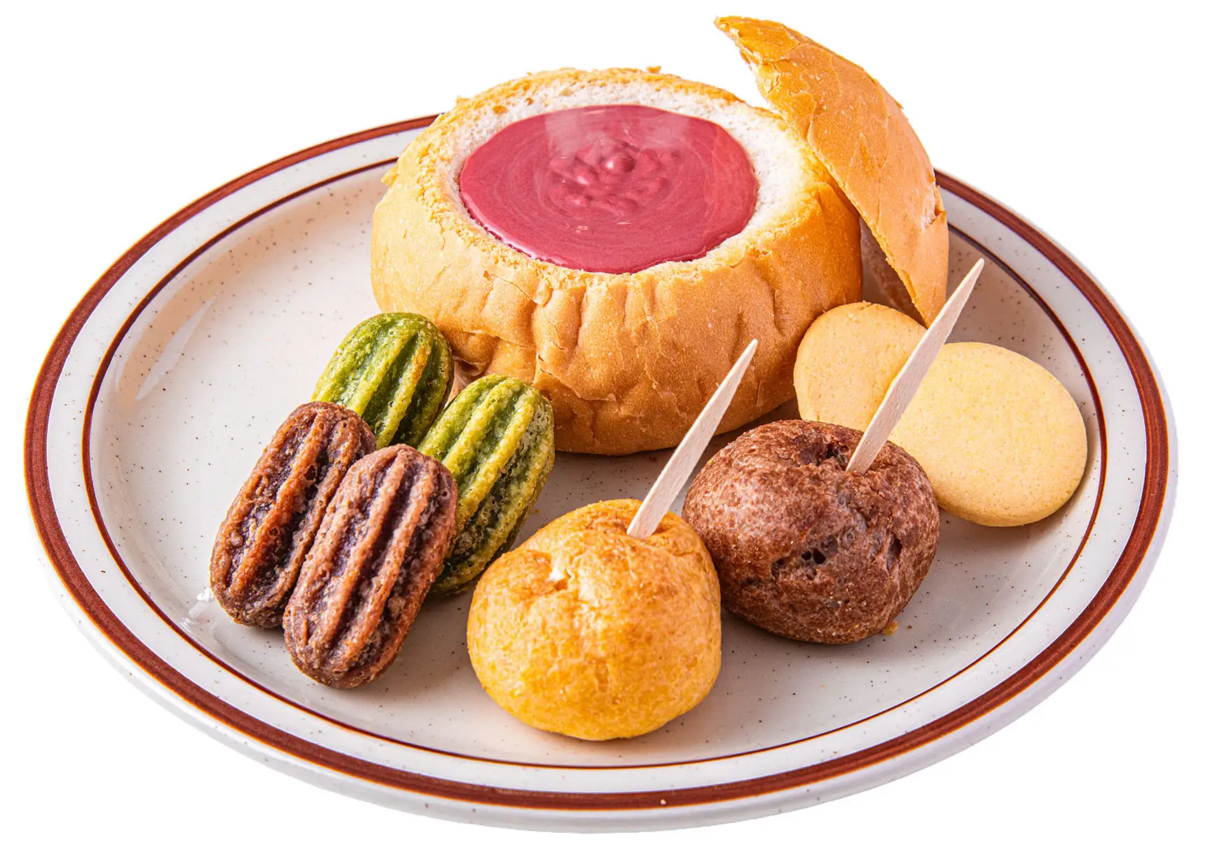 サクッと軽いひとくちチュロス、ふんわりクリーム入りのプチシュークリーム、香ばしいクッキーをディップすれば、食感も味わいも楽しさも倍増します。