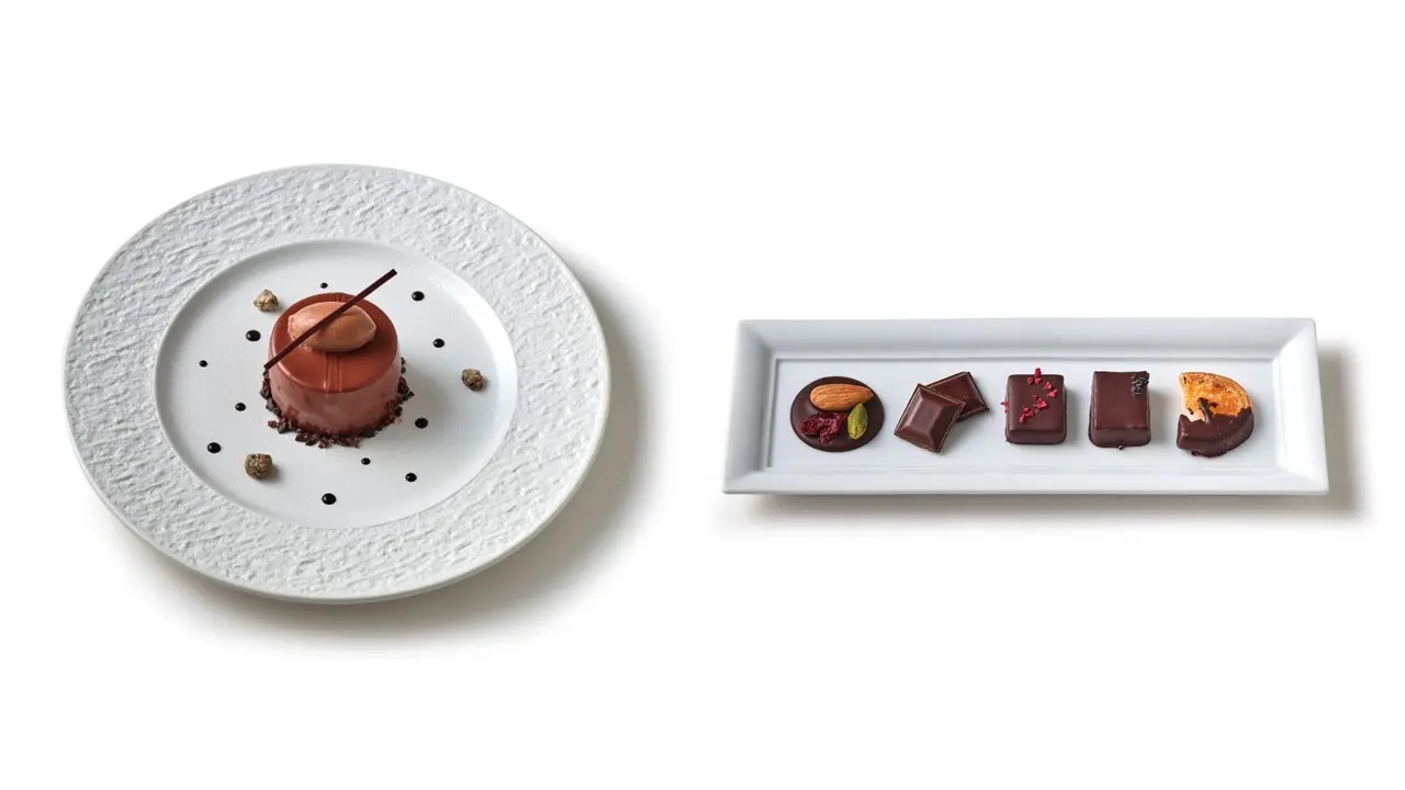 ショコラの中に潜む素材や製法、⼝どけや味わいのバランスなど、シェフのこだわりや哲学が詰まった