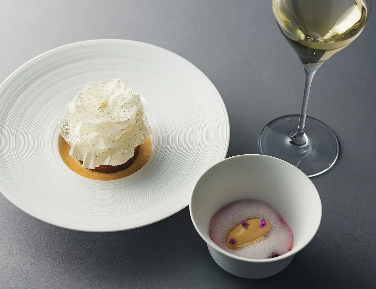カウンター越しに実演し、つくりたてのデセールやパフェを目の前で提供、そのまま召し上がっていただくライブ感あふれるスタイルです。デザートメニューとともに、ドリンクのペアリングも楽しめます。トップクラスのパティシエとの特別な出会い、触れあえる楽しさを体験できる特別な12日間をお楽しみいただけます。