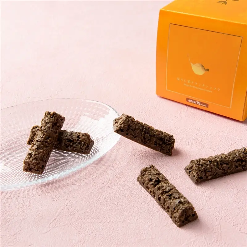 焙煎香豊かなほうじ茶とサクサクのフィアンティーヌを合わせた、香ばしさ際立つクランチショコラ。サクサクの食感と茶葉の香りを存分に楽しめるチョコレートです。