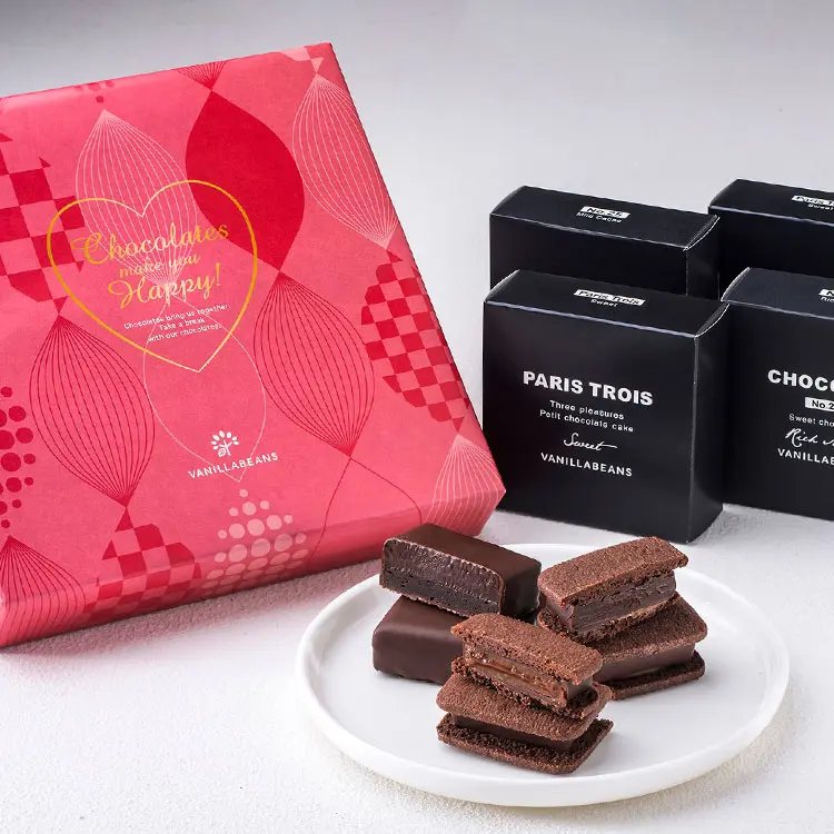 芳醇な後味が感じられるビターフレーバー「ショーコラ・マイルドカカオ」、優しい甘さのミルクチョコレート「ショーコラ・リッチミルク」、3層からなる濃厚プチショコラケーキ「パリトロ・スイート」のバレンタイン限定パッケージです。