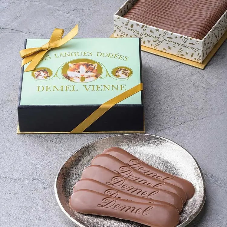 世界中で愛され続けているオーストリア・ウィーンの老舗菓子補。猫の舌をモチーフにした愛らしいチョコレートはカカオの風味となめらかな口どけが楽しめるミルクチョコレートです。