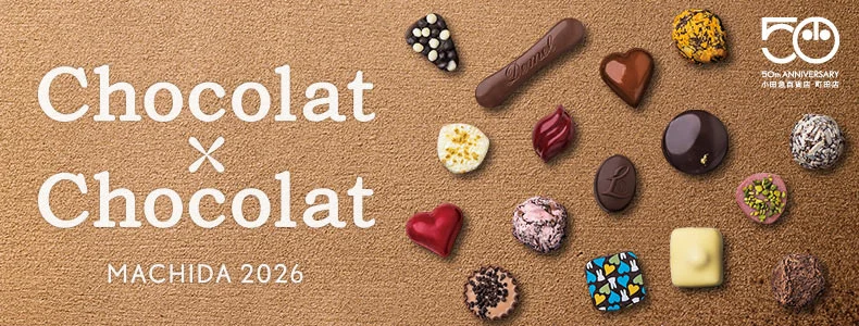小田急百貨店町田店5階の催物場では、1月28日(水)~2月14日(土)の期間、「ショコラ×ショコラ」を開催します。今年迎える町田店開店50周年を記念した町田店限定のチョコレートが登場します。そのほか、老舗王道の逸品からパッケージデザインもかわいい行列必至の人気アソートやチョコレートスイーツまで49ブランドのチョコレートを一堂に展開します。また、地下1階の食品催事場においても期間限定でバレンタインのチョコレートを販売します。