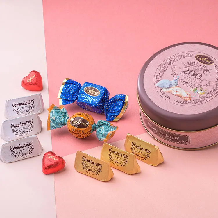トリノの地図を描いた200周年記念デザイン缶が登場。カファレルを代表するジャンドゥーヤを含む10粒をアソートしました。