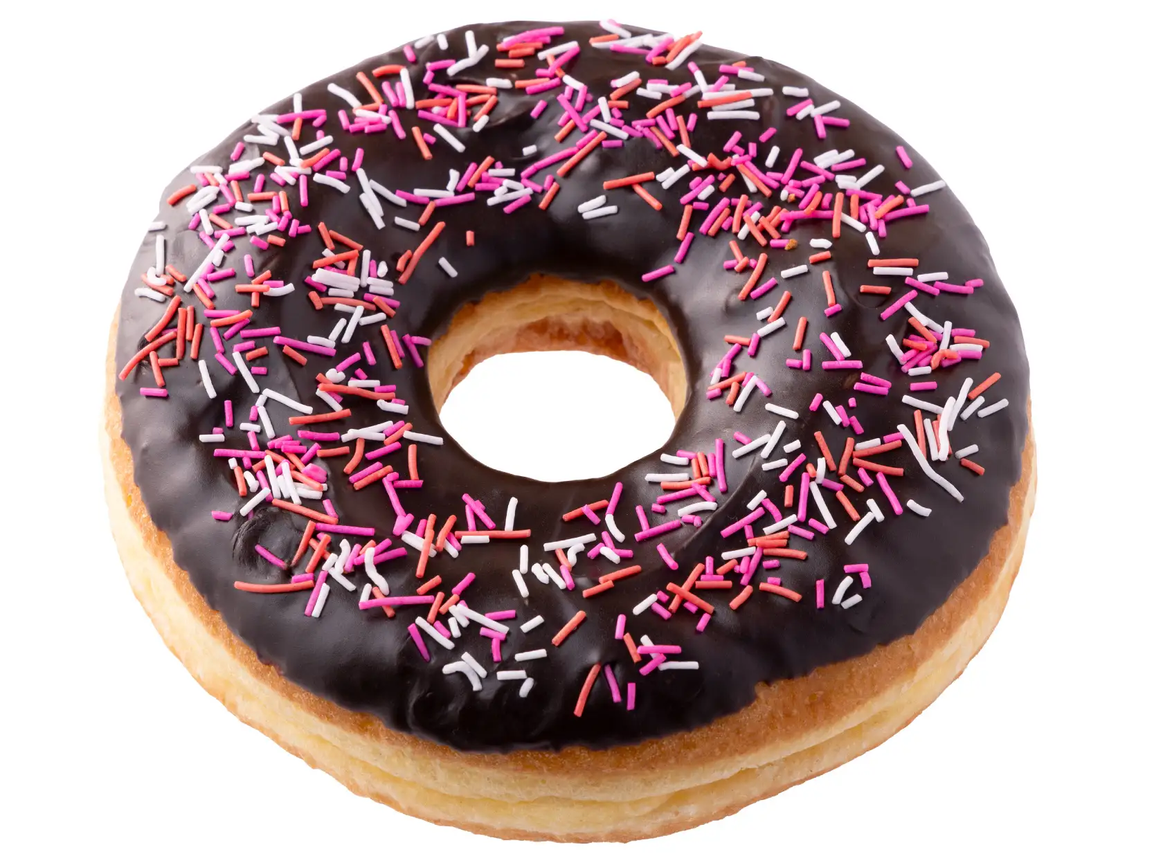 ふんわり食感のドーナツに、鮮やかなピンクのアイシングとカラフルなスプリンクルをトッピングしました。