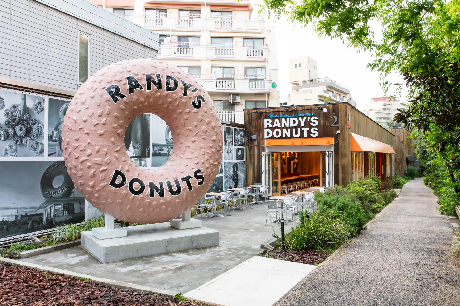 「ランディーズドーナツ」は、1952年にロサンゼルスで創業した大人気ドーナツ店です。特に、米国1号店の屋根上にそびえ立つ直径約10m(32フィート)の巨大なドーナツ型サイン看板が古くから街のシンボルとなっており、人気映画やミュージックビデオにも登場するなど、ロサンゼルスのランドマークとして広く知られています。