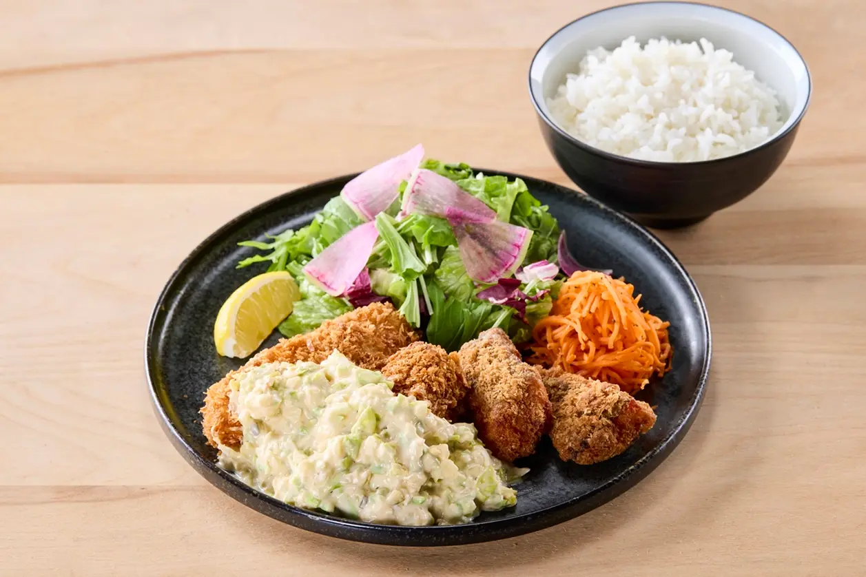 【使用食材】三陸産 生カキフライ大粒35g、三陸産 生真タラフライ、ビュッフェ向け 宮城県産 一口 銀鮭フライ 20g‑35g