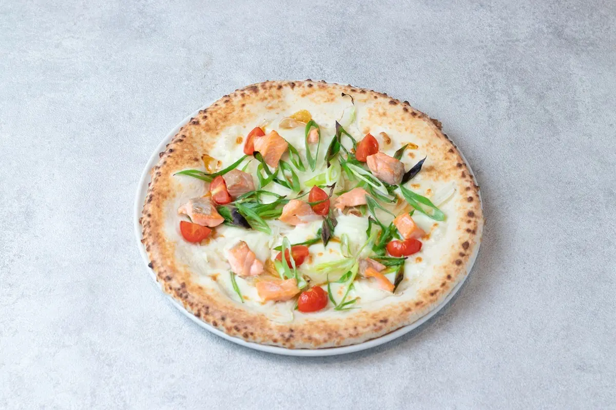 【メニュー名】サーモンと柚子味噌のピッツァ サルモーネ