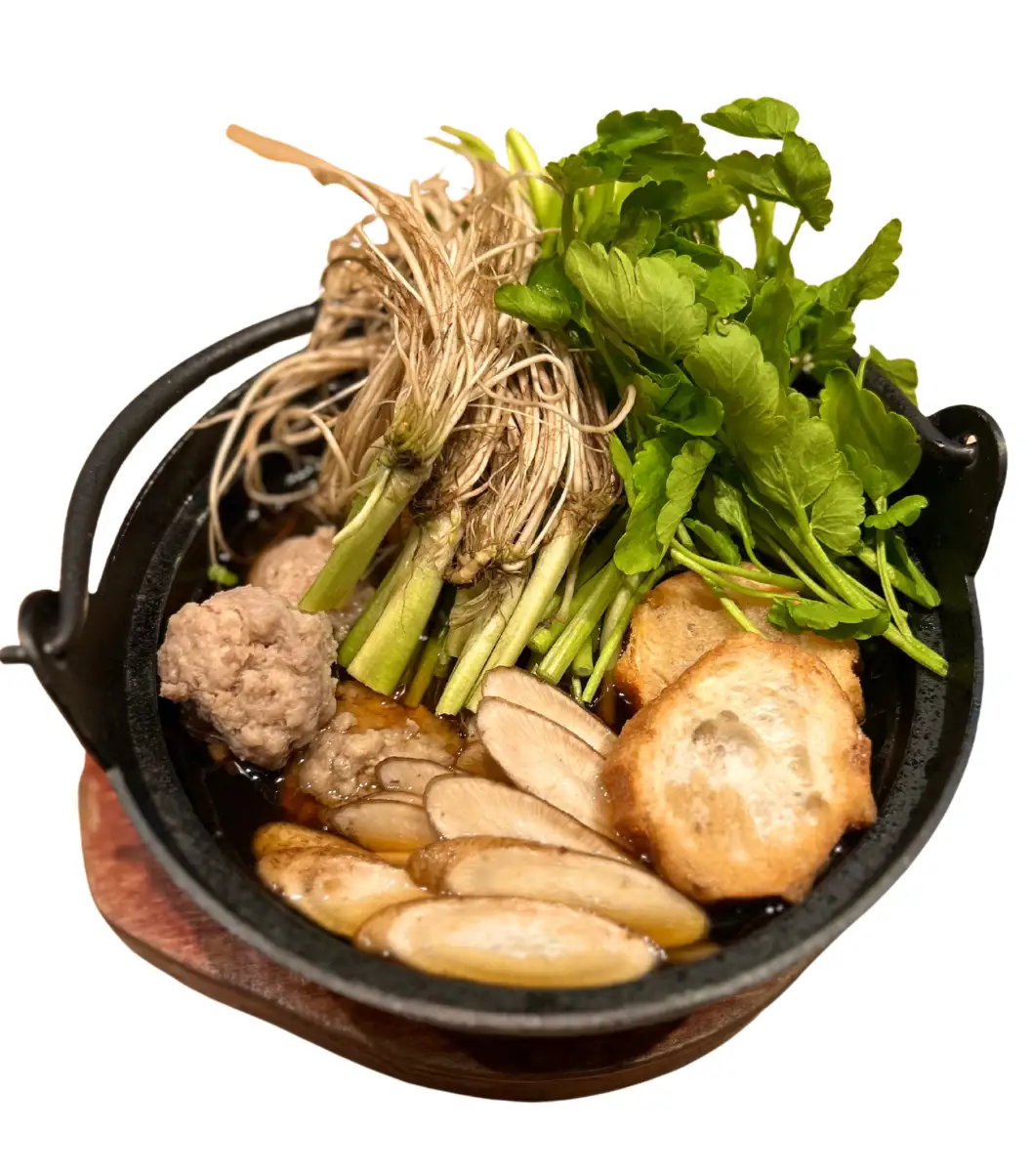 宮城県仙台市に店舗を構える「炭火酒場・伊達トリムネ」鶏の炭火焼きをメインに宮城の郷土料理を提供する居酒屋が出店。食材は名取市で生産する「根せり」、蔵王町ブランド豚「JAPAN X」、名物「仙台油麩」。醤油は通算8回の農林水産省大臣賞を受賞した加美町の今野醸造「吟醸醤油」。宮城が誇る食材で作りであげた仙台せり鍋を是非ご賞味下さい!