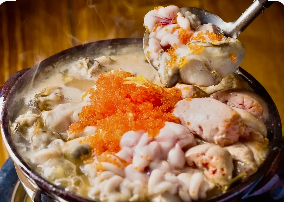 私たちは普段旬の魚や各地の日本酒を取り扱ってる地域で人気の居酒屋うおひごです、今回は普段お店で使っている新鮮な、あん肝、白子、牡蠣などを使ったし使った痛風鍋を提供します!とっても美味しいので痛風上等という方は是非来てください。あん肝、白子、牡蠣などの旨味の強い物を入れた鍋!濃厚な味わいが海鮮好きにはたまらない!