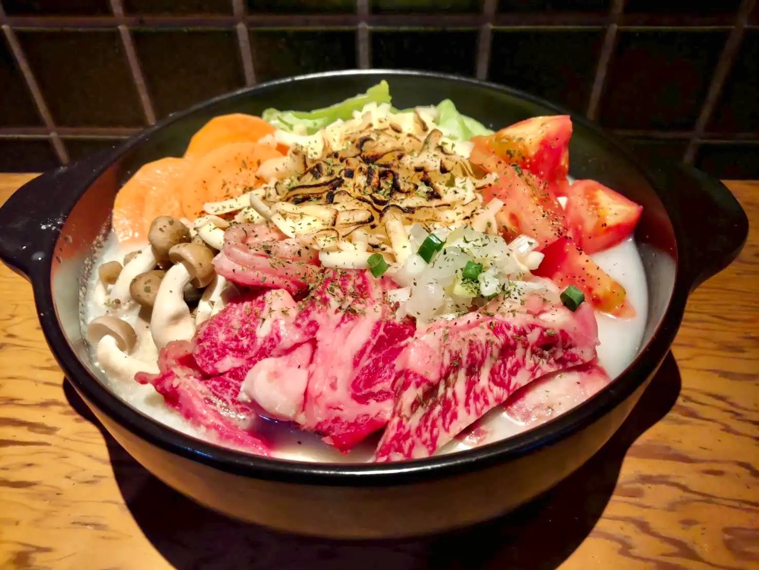 前回準優勝!名古屋コーチン使用の白湯スープに和牛スジやトマトチーズを合わせた和と洋のスペシャル鍋!お好きなトッピングでカスタムもできます!
