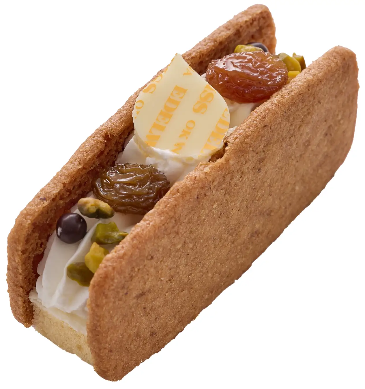 ジェノワーズ生地にバタークリーム、甘みと酸味のマスカットレーズンラム酒漬けを重ねヘーゼルナッツの芳醇な香りとキャラメルの甘さがほのかに香るしっとりサブレでサンドしました。