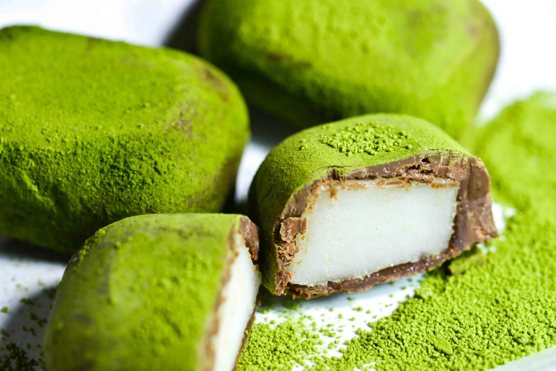 ・チョコと抹茶の重厚なハーモニー:お餅を包み込むチョコレートと、その上から文字通り「抹茶に溺れる」ほど贅沢にまぶした粉末。濃厚な味わいが口の中で爆発します。