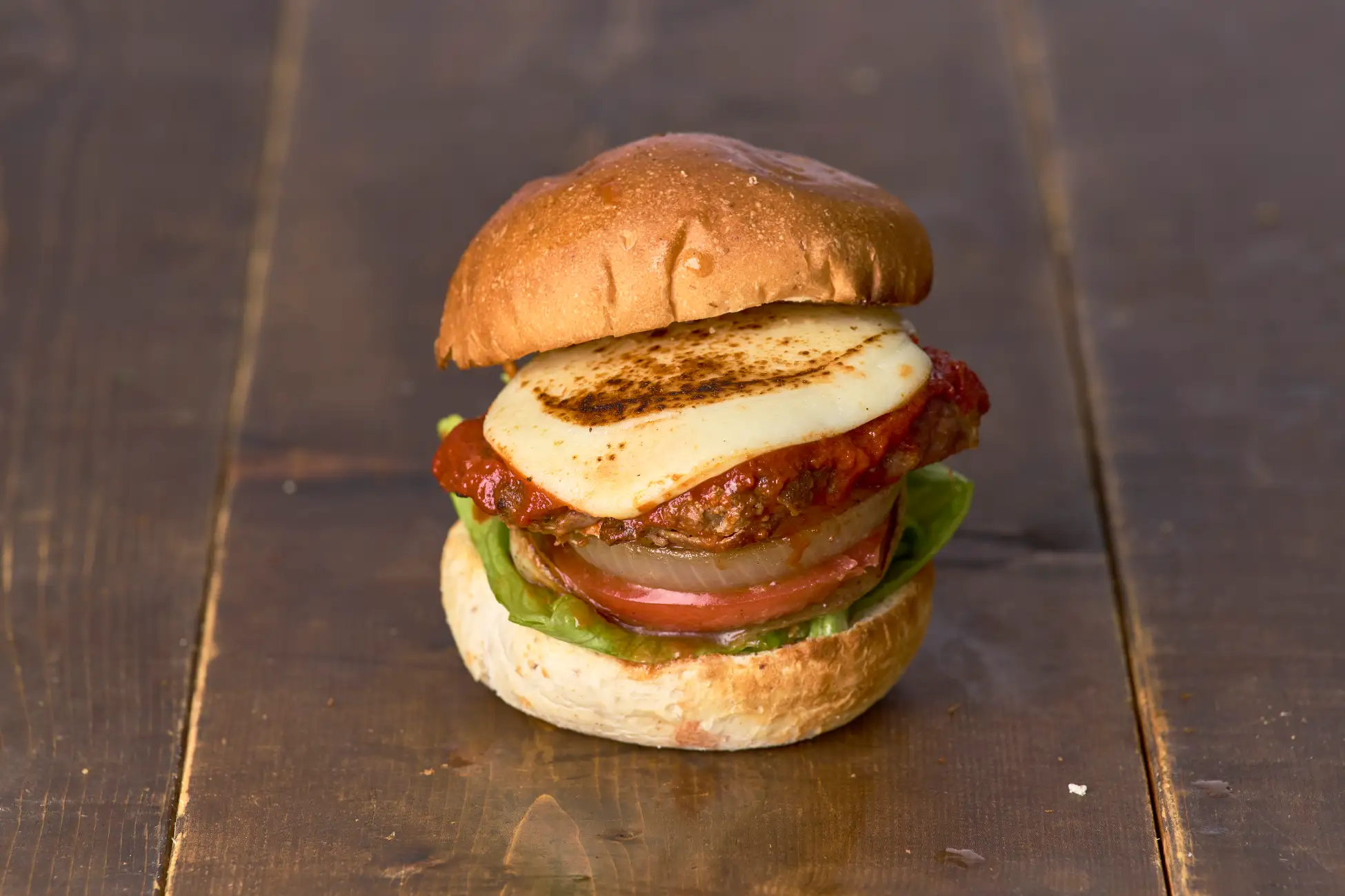 旨味のオリジナルパティに、とろ~り、なめらかなイタリア産モッツァレラチーズをたっぷりオン!