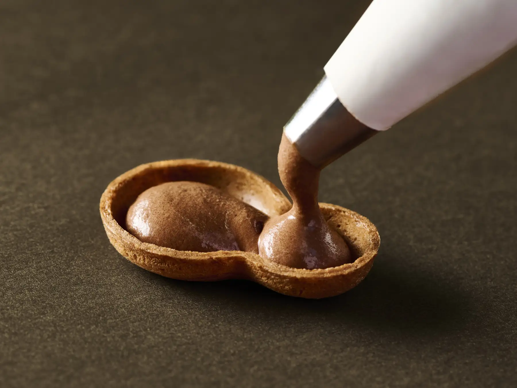 クッキー生地とのバランスにこだわってブレンドした華やかな香りのミルクチョコレートは、一般的なエアーインチョコレートよりも多く空気を含ませることで、ふわふわとした食感を実現しました。