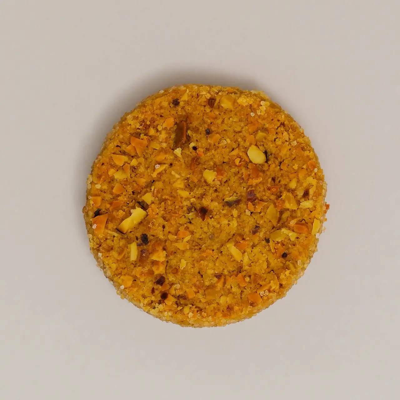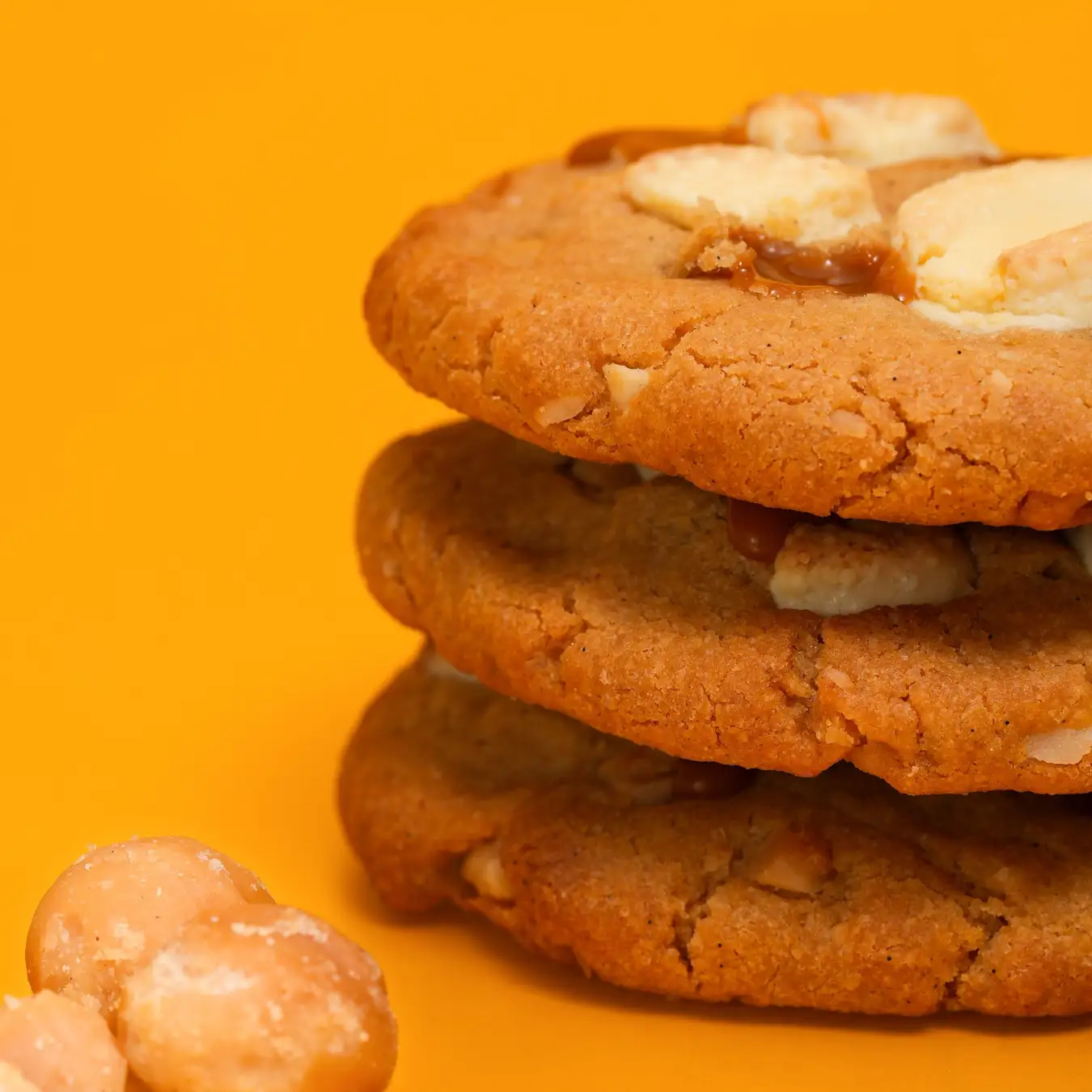 バタークッキーに焦がしキャラメルを挟み、塩を添えて甘さを引き立てた一枚。ザクザクなクッキーとなめらかなキャラメルの食感のコントラストもお楽しみいただけます。