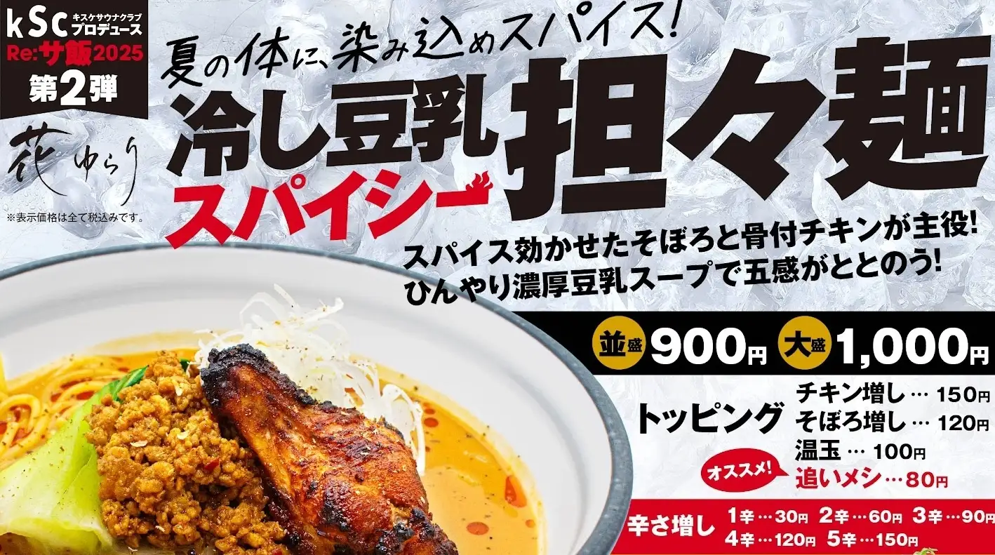 2025年7月1日より夏季限定で販売開始。数十種のカレースパイスを効かせた肉そぼろ、痺れる刺激の豆乳スープ、スパイシーな骨付きチキン、もちもち中太麺、夏野菜という“五感設計”で、暑い季節の食欲と回復をサポートする提案として展開しました。