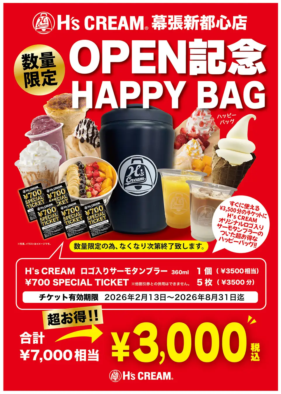 ¥3,500分のスペシャルチケットも入った¥7,000相当のHAPPY BAGです。
