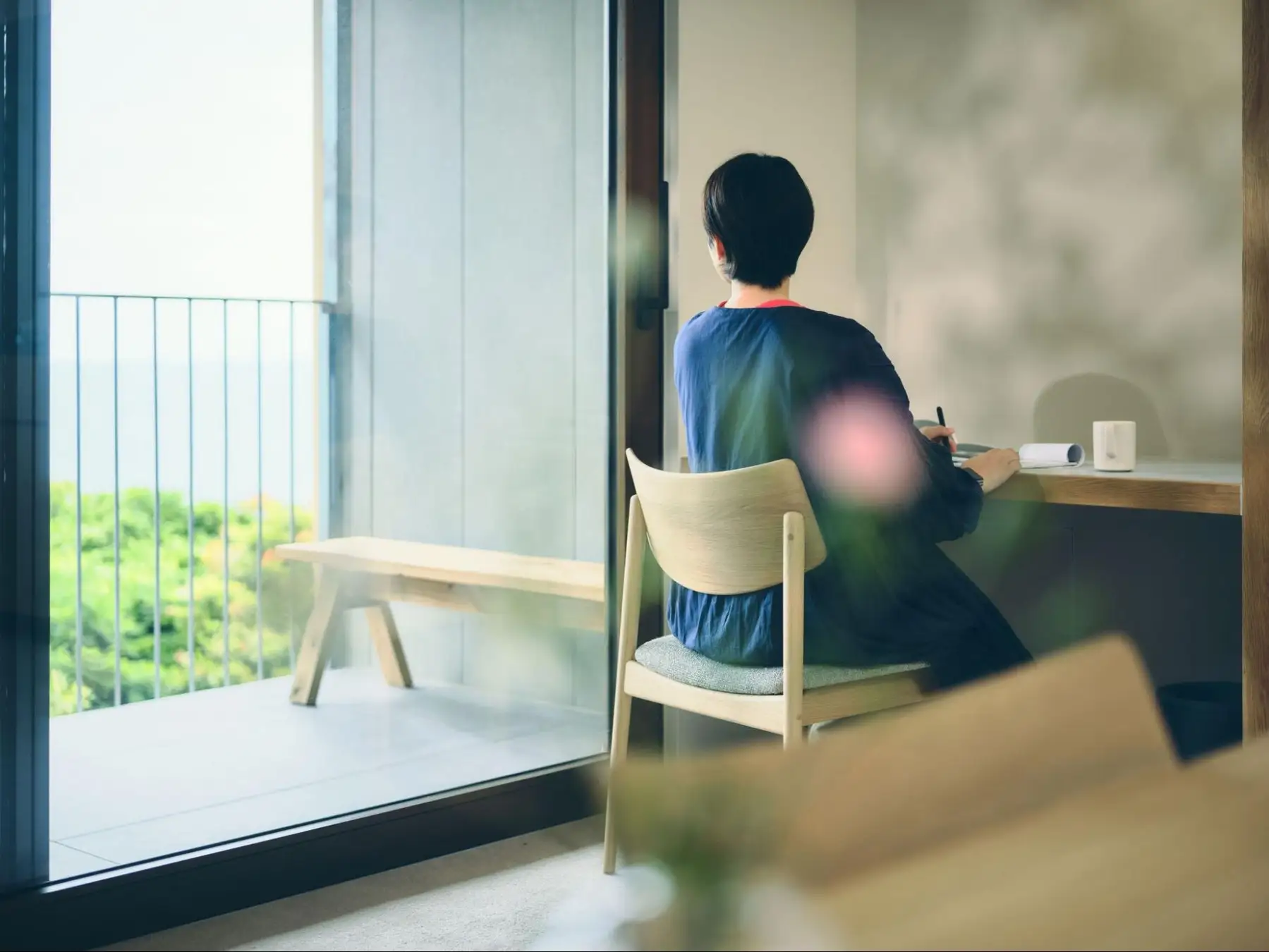 昼:デッキで海風に包まれての休息。ワーケーション。