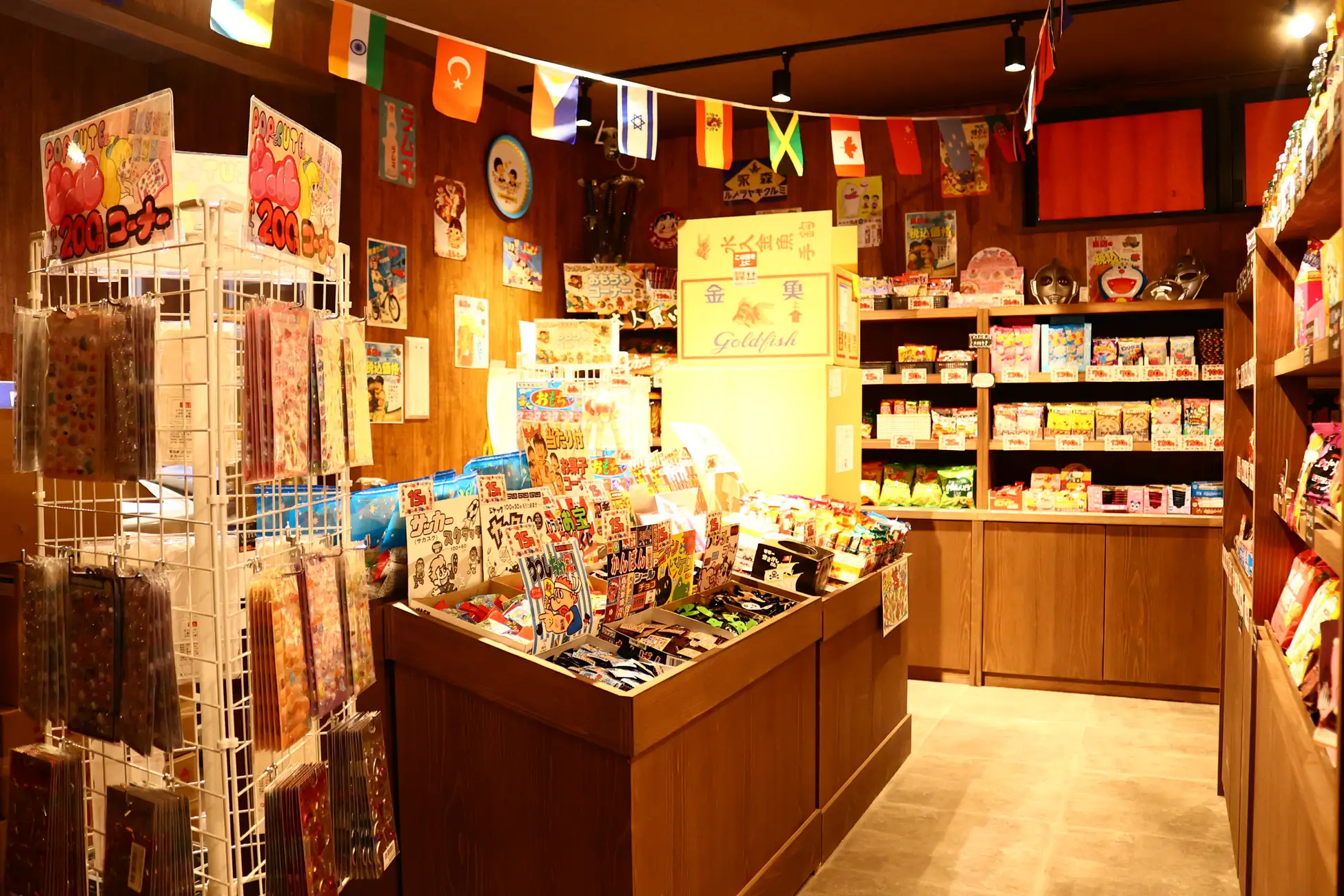 築18年の建物が持つ「味」を活かしつつ、独特の風合いを感じるポスターや看板を模した店内装飾、アンティークな内装が特徴的な喫茶エリア、さらには懐かしさを感じる街角も店内で再現しています。
