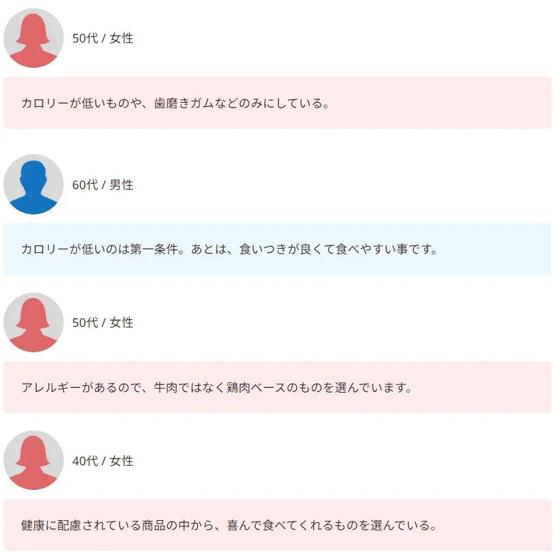 おやつ選びでは、「安心して与えられるか」を重視する声が多く見られました。