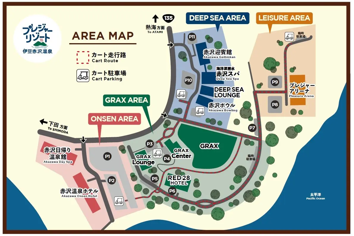 カトープレジャーグループ(東京本社/東京都港区・代表取締役社長 兼 グループCEO/加藤宏明)は、2026年4月27日、静岡県伊東市赤沢の広大な敷地内に、関東エリア最大級となるグランピング施設「GRAX EARTH FIELD(グラックス アースフィールド)」と、全天候型の大型屋内アミューズメント施設「PLEASURE ARENA(プレジャーアリーナ)」の2大エンターテインメントエリアを新設いたします。これに伴い、既存の温泉・宿泊施設を含めたリゾート全体を統合し、「プレジャーリゾート 伊豆赤沢温泉」としてグランドオープン。「遊びと癒し」がボーダレスに融合した、日本を代表する総合型リゾートとして、新たな体験価値を提供します。