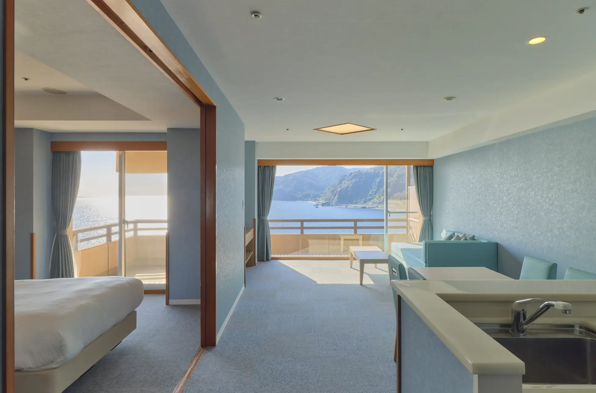 太平洋を一望する高台に建つ赤沢温泉ホテルは、壮大な海景と共鳴するホテルへと進化しました 。「伊豆の海・森」をテーマに異なるカラーコンセプトで伊豆の自然美を表現した客室や、絶景と一体化するロビーを全面改装。空と海に溶け込む絶景の湯浴みとともに、より快適で心安らぐ滞在をご提供します。