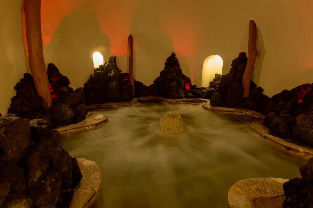 [1階] 霊峰露天風呂・霊峰湧水風呂・洞窟風呂・香り風呂・蒸し風呂・サウナ・ 炭酸泉