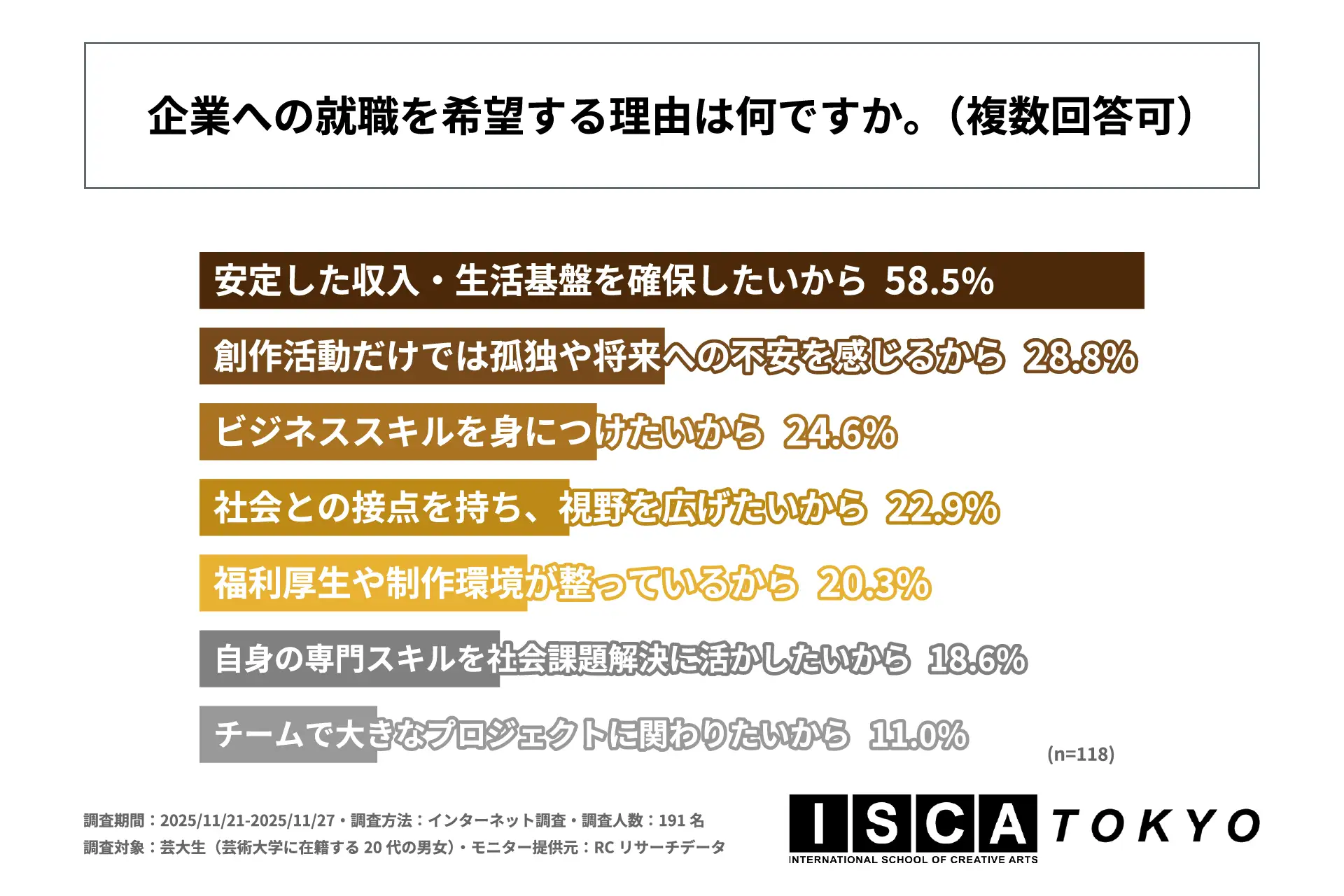 ・芸大生が企業へ就職を希望する最大の理由は、「安定した収入・生活基盤を確保したいから」