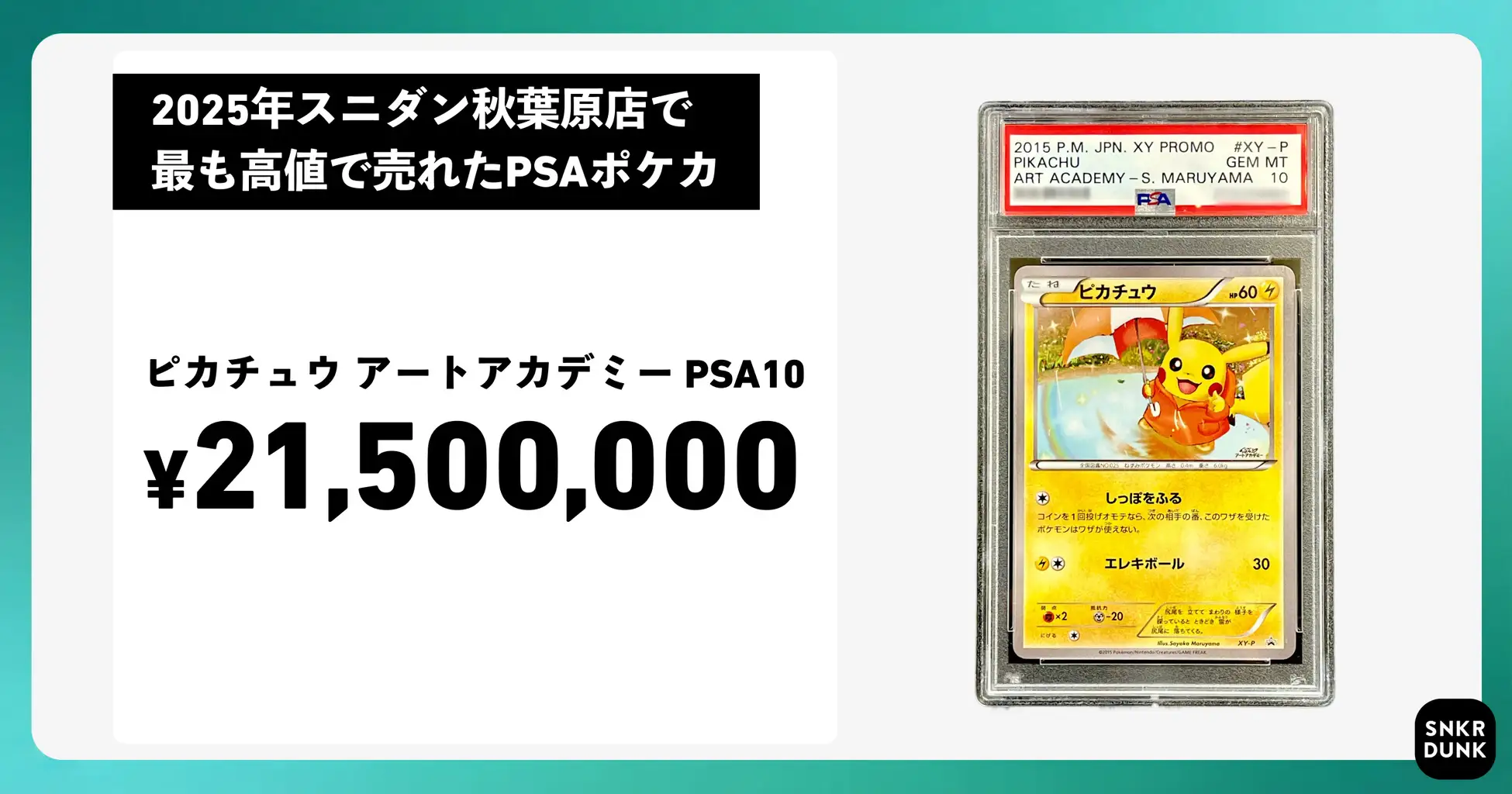 2025年にスニダントレカ秋葉原店で最も高値で売れた「PSAグレーディングカード」は、「ピカチュウ アートアカデミー PSA10」でした。(※10)