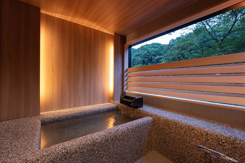 寒い冬にこそご堪能いただきたい当館の天然ラドン泉は、その希少性と効能により真のウェルネス体験を味わっていただけることでしょう。メインの大浴場では自然と一体化した開放的な環境を、屋上の3タイプの個室露天風呂では完全にプライベートな温泉体験を、別館「金泉の湯」では野趣に富んだ岩風呂での特別な入浴体験をご堪能いただけます。