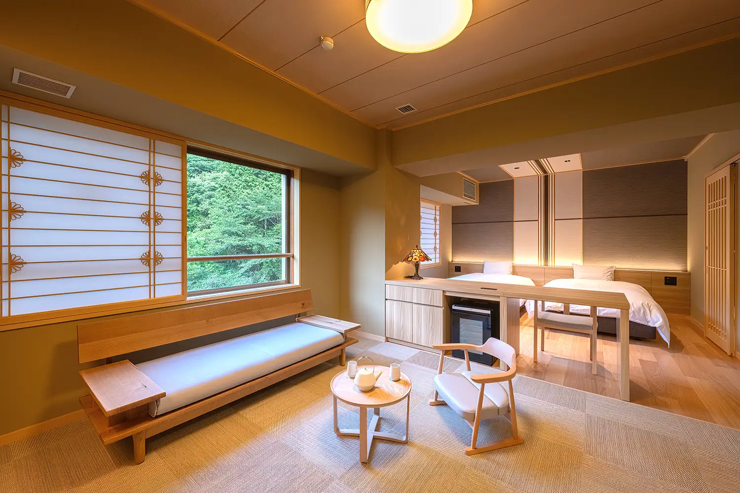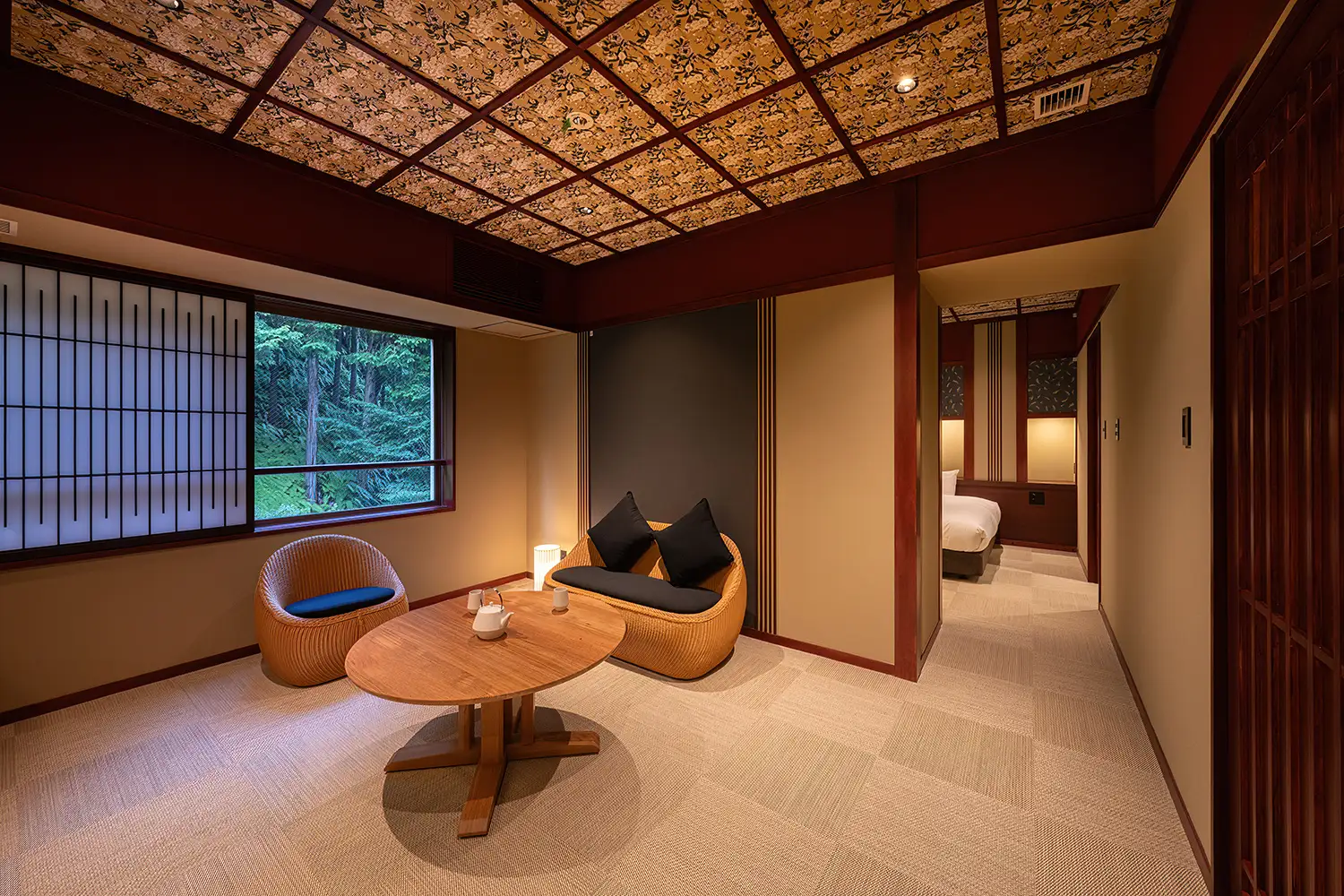 春は桜から始まり、新緑、紅葉、時には雪景色と、四季折々の風景が上質感のある客室からも楽しめます。