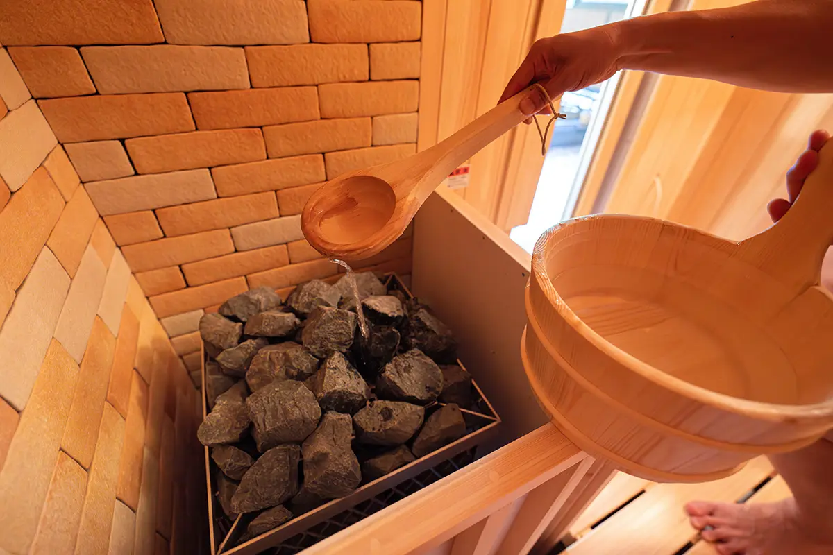 大浴場のサウナでは飲める天然ラドン泉を使用したセルフロウリュも愉しめる。