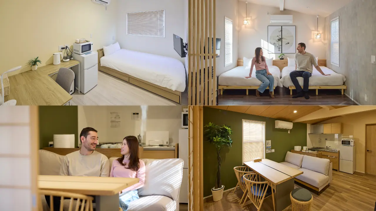 観光の拠点はもちろん、短期出張やワーケーションなど滞在スタイルが多様化する河口湖エリアに向けて、ダブル/ツインルームは1名7,000円〜。さらにファミリールームは1棟あたり15,000円〜の1棟料金で、家族・グループでも選びやすいプランです。