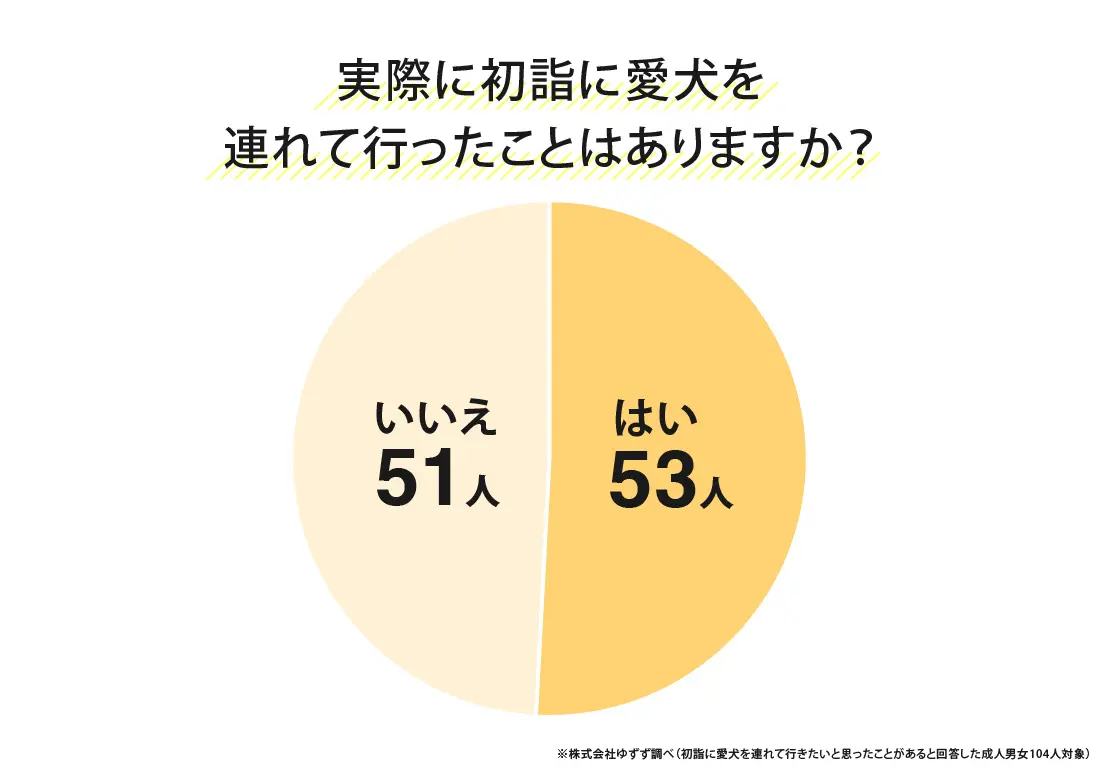 初詣という年中行事において、愛犬と一緒に過ごしたいと考える飼い主が約半数を占める結果でした。