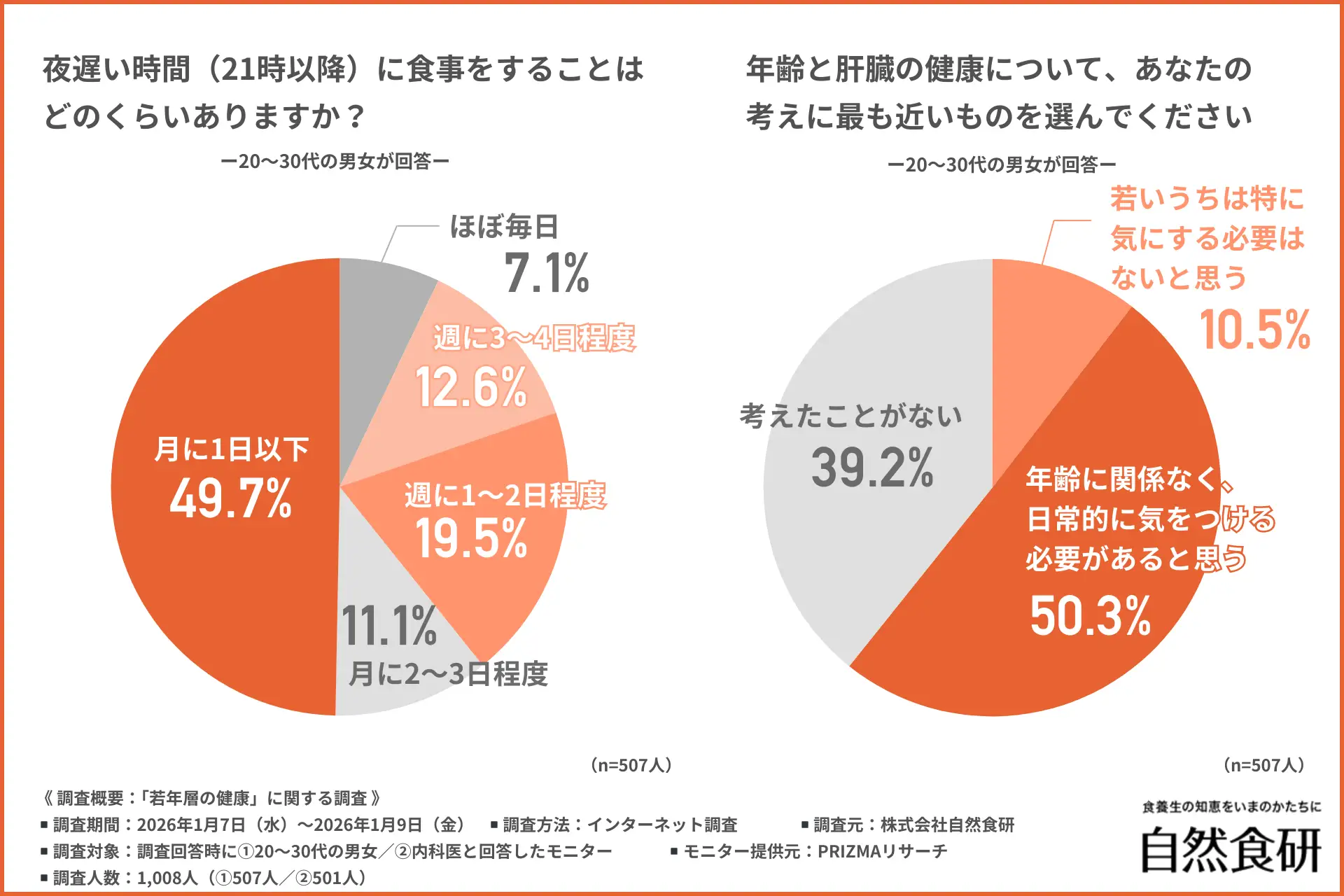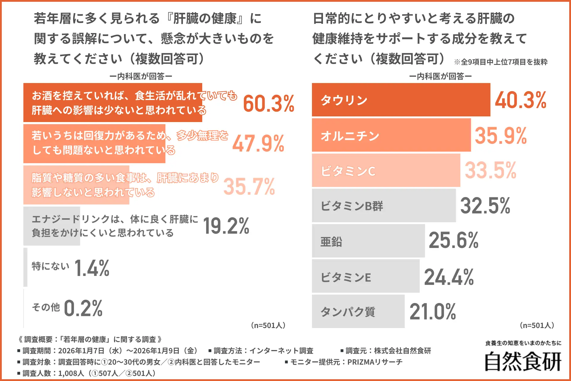 そこで今回、株式会社自然食研(https://www.sizenshokken.co.jp/)は、①20~30代の男女/②内科医を対象に、「若年層の健康」に関する調査を行いました。