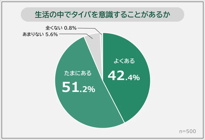 全国の男女500人に「生活の中でタイパを意識することがあるか」を聞いたところ、「よくある(42.4%)」「たまにある(51.2%)」と答えた人が合わせて93.6%でした。