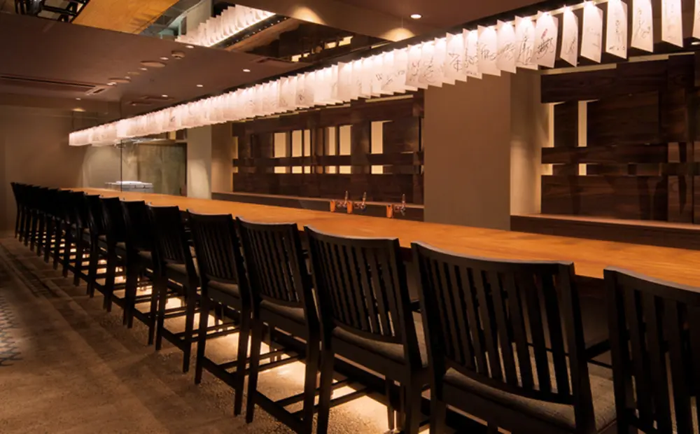 認知度3位(8.88%)の「お菜屋 わだ家」は、「和」をテーマに素材として「水・土・石」を取り入れ、日本の伝統と文化を空間で再現しています。オープンキッチン・スタイルのカウンター席で調理過程を見せることで、品質への信頼感を醸成。