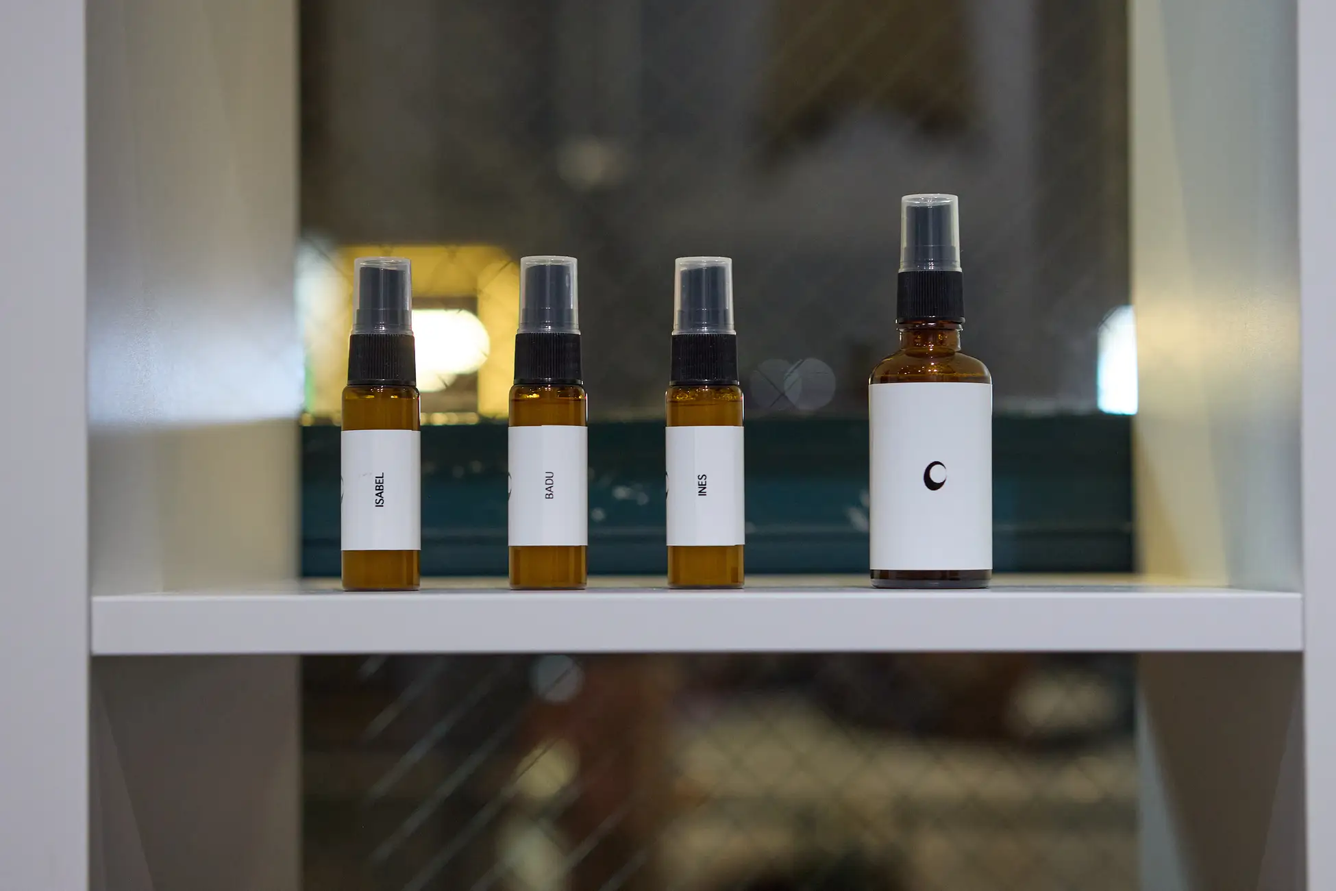 ・会場奥の空間では、アロマパルファニスト Sumire Miyazaki が髙山とCHNEIDER、それぞれをイメージしてブレンドした香りを体感型インスタレーションとして展開。