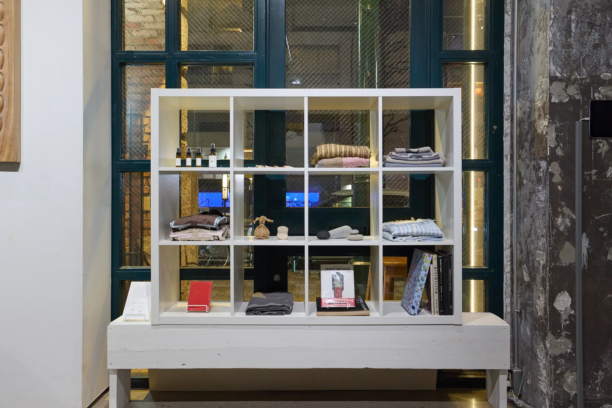 ・会場に設えたラックでは、会場内で漂うSumire Miyazakiが創り出す香りをプロダクトとして販売。CHNEIDERのアーカイブ作品や関連書籍、髙山瑞、Junki Noda(CHNEIDER デザイナー)の小作品も展示・販売しています。