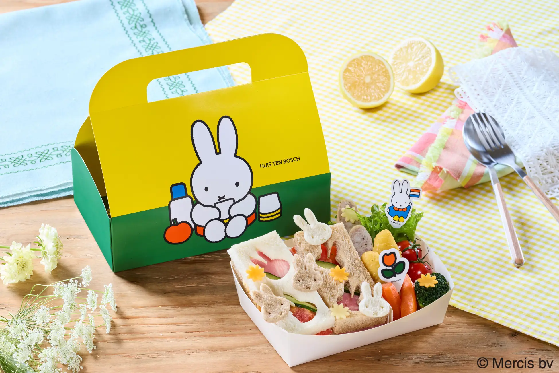 「ミッフィーとメラニーのセレブレーションハンバーグ」は、お花のケーキをイメージしたハンバーグに、チーズでできたミッフィーやくまちゃん、お花で彩ったサラダを添えた、見た目も華やかなプレート。思わず写真を撮りたくなるような、心ときめく一皿です。そして、「ミッフィーのお花畑BOX」は、春のお花畑をイメージしたサンドイッチボックス。ボックスを開けた瞬間、ミッフィーの形をしたサンドイッチがちょこんと顔をのぞかせ、思わず笑顔になります。