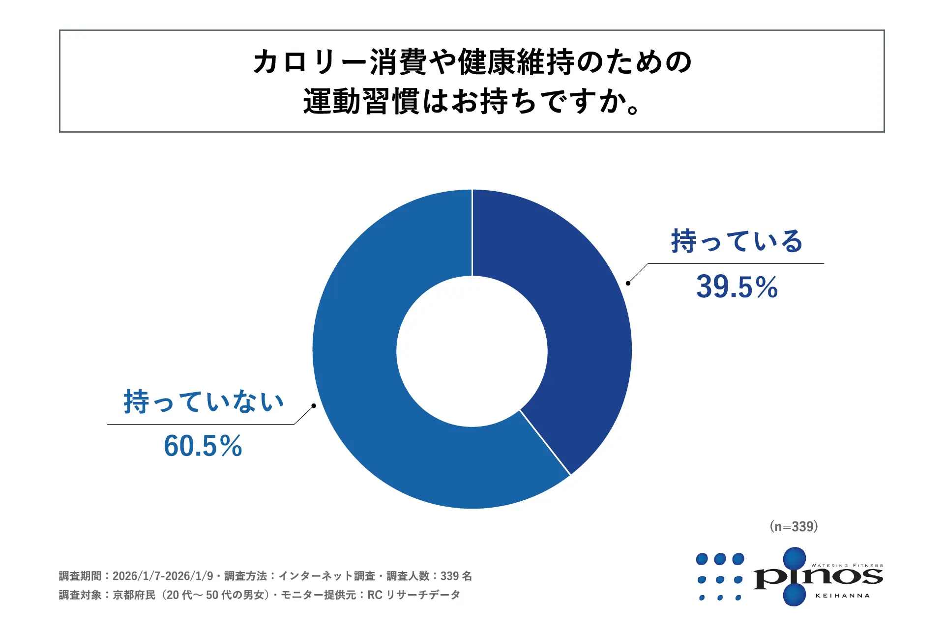 京都府民の約4割が、カロリー消費や健康維持のための運動習慣を持っている