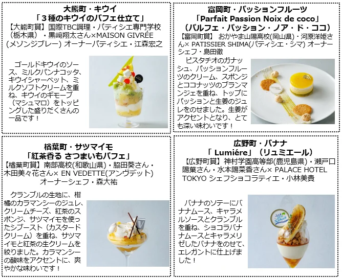 「スイーツ甲子園 ふくしまチャレンジカップ」各町賞高校生が考案