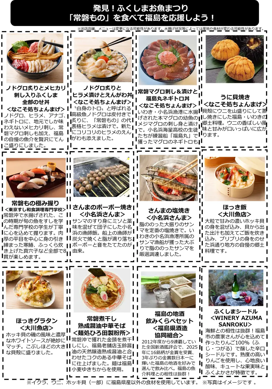 ※イクラ、ウニ、ホッキ貝(一部)に福島県産以外の食材を使用。