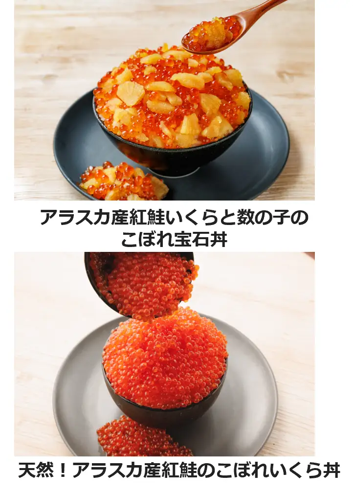 ルビー色のイクラと黄金色の数の子がこぼれ落ちる!