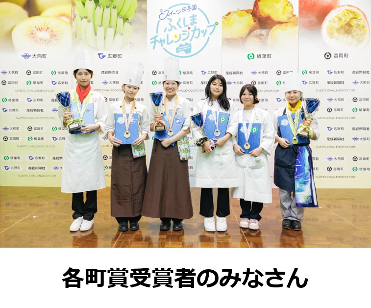 高校生パティシエ日本一を決める「スイーツ甲子園 高校生パティシエNo.1決定戦」(主催:産経新聞社)の姉妹コンテストとして2023年に誕生。4町の特産品の魅力とおいしさを知ってもらい、東日本大震災と原子力災害からの復興を応援しようと、福島県のサッカー施設「Jヴィレッジ」に、厳正なレシピ審査で選ばれた全国の高校生12組が集い、お菓子作りのアイデアと技術を競う決勝大会を8月に開催。大熊町賞、富岡町賞、楢葉町賞、広野町賞を選出。受賞者には、審査員を務めたトップパティシエとコラボし、それぞれの特産品を使ったオリジナルスイーツを考案する副賞を贈呈。