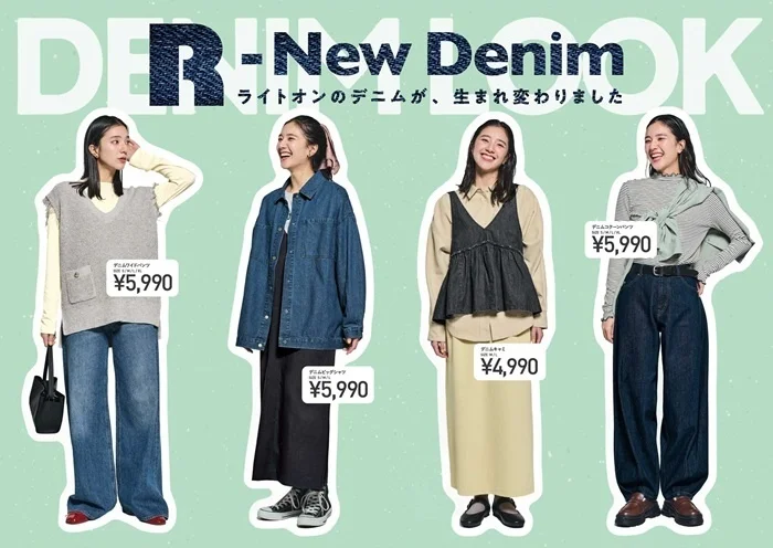 2026年春シーズンは、ライトオンの得意分野であるデニムをキーアイテムとして、素材・シルエット・デザインのバリエーションを拡充し展開いたします。
