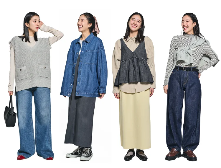 商品は、トレンドのワイド、コクーンなどのシルエットのジーンズに加え、デニムキャミソールやシャツ、ジャケットなどのトップスもラインナップ。日常のアクティブシーンからお出かけまで、着る人の毎日を彩ります。